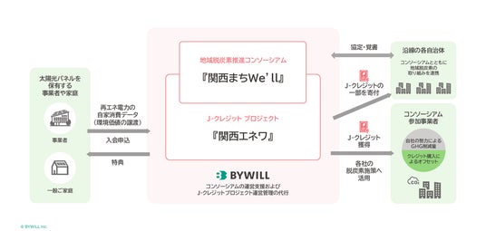 また、関西まちウェルが2025年9月より、15の自治体※1と連携して開始する、太陽光パネルによる自家消費電力の環境価値をJ-クレジットとして創出するプロジェクト「関西エネワ」において、バイウィルはその運営およびJ-クレジットの創出・管理・分配業務の支援も行います。