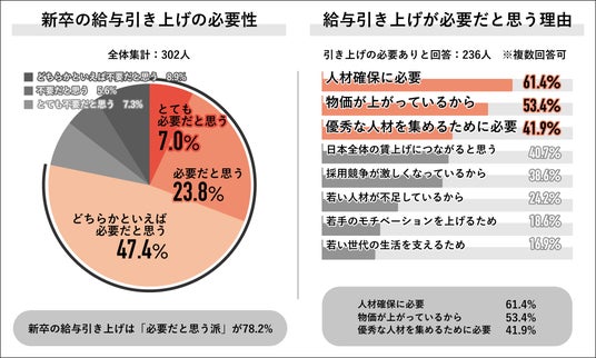 ・全体の78.2%が新卒の給与引き上げは「必要」 理由は「人材確保のため」「物価が上がっているから」