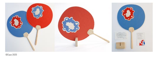 EXPO2025 公式ロゴ 京うちわ 青(左)EXPO2025 公式ロゴ 京うちわ(赤)