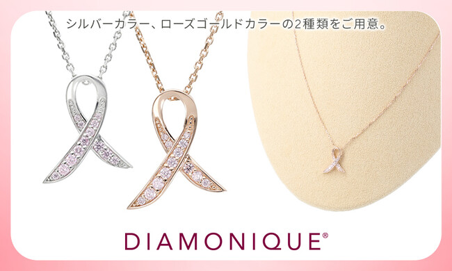 また、QVCオリジナルブランドの「ダイヤモニーク(Diamonique)」からピンクリボン運動の協賛商品としてリボンモチーフのペンダントネックレスが登場。今年はピンクカラーのキュービックジルコニアをあしらい、日常的に使いやすいサイズ感と輝きで幅広い年代の方にお楽しみいただけます。なお、本商品のQVCジャパンにおける2023年10月中の売り上げ金額の100%(消費税を除く)を、認定NPO法人 乳房健康研究会に寄付させていただきます。