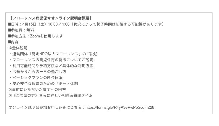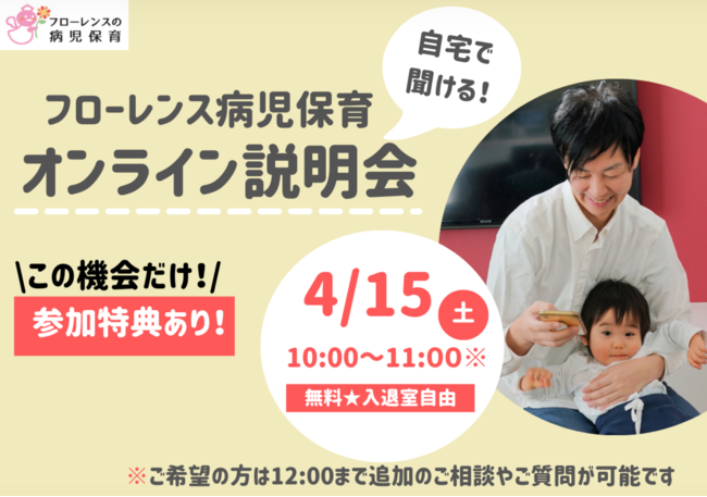 ご入会前の疑問を解消!4/15(土)フローレンス病児保育オンライン説明会開催!