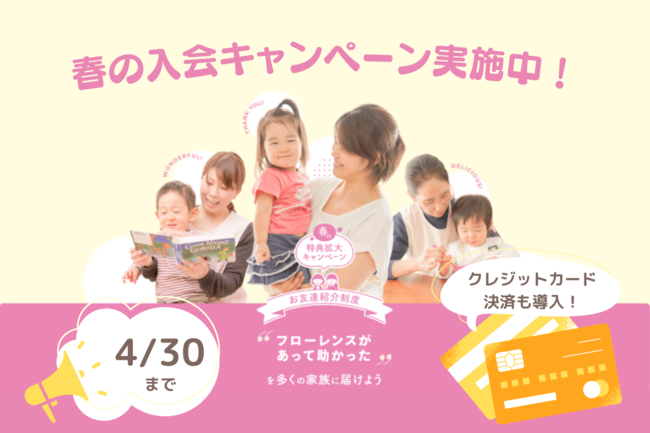 認定NPO法人フローレンス(東京都千代田区、代表理事:赤坂緑)は、4月30日(日)までの期間限定で、入会特典拡大キャンペーンを行っています。スローガンは昨年に引き続き、「”フローレンスがあって助かった”を多くの家族に届けよう!」です。また、2023年3月29日より、既存会員の皆さんからもご要望の多かったクレジットカード決済を導入しました。