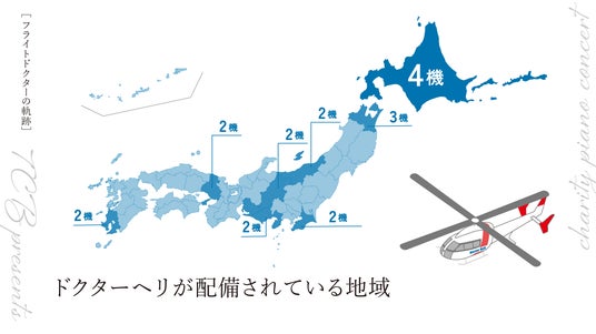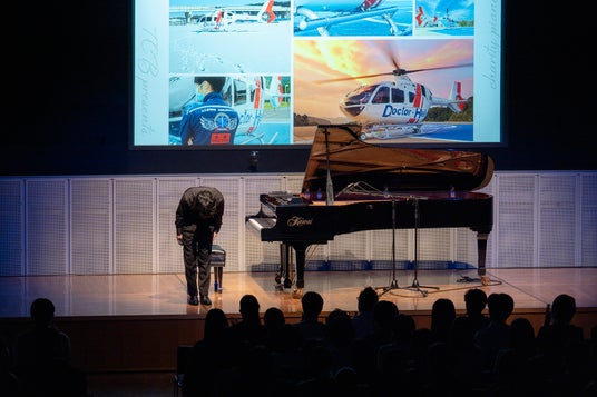 元フライトドクターである松村圭祐医師によるピアノ演奏を中心に、ドクターヘリや医療搬送用ヘリ、地域医療・離島医療の現状について多くの方に知っていただけるような構成としました。