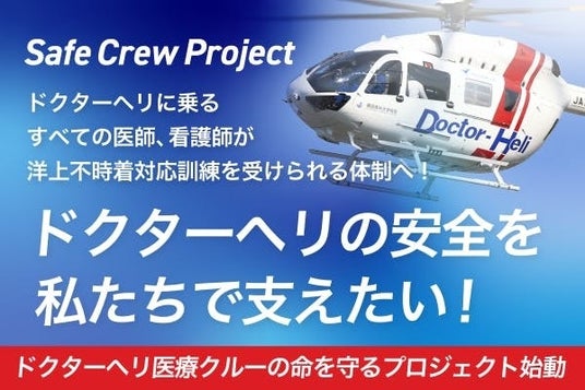 「Safe Crew Project」は、認定NPO法人 救急ヘリ病院ネットワーク(HEM-Net)が実施するドクターヘリ支援活動で、ヘリに搭乗する医療クルー(医師・看護師)が洋上不時着対応訓練等を受けられる環境づくりを目的としたものです。