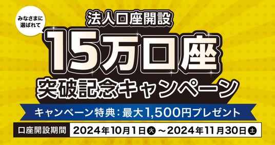 新規口座開設者さま限定!法人口座開設15万口座突破記念キャンペーン