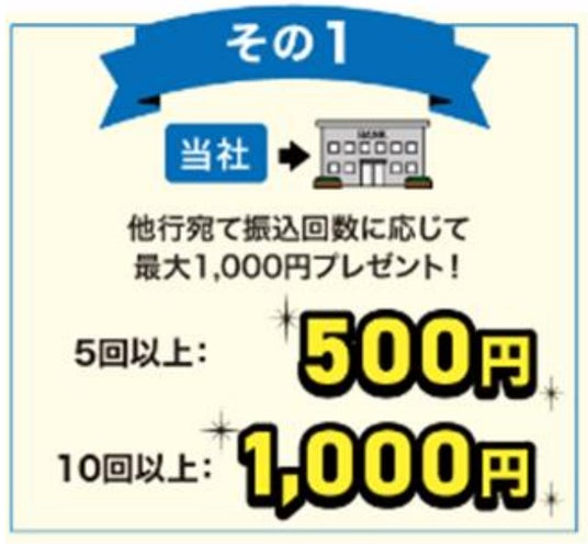 他行宛て振込回数に応じて、最大1,000円プレゼント