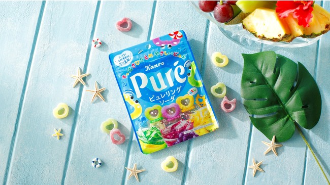 昨年発売された「ピュレリングソーダ」は、ピュレリングならではの小さなお子さまでも食べやすい、すっぱさ控えめのさらさらパウダーを使用し、お子さまに人気の高い、フルーツ×ソーダ味のグミとなっています。ピュレグミ独自の食感を残しながら、光沢剤・合成着色料不使用なので、安心してお召し上がりいただけます。