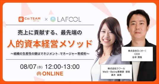 人的資本/ウェルビーイング経営支援の株式会社ラフール(本社:東京都中央区、代表取締役社長:結木啓太 以下「ラフール」)は、「売上に貢献する人的資本経営メソッド~組織の生産性の鍵はマネジメント マネージャー育成術~」をテーマとしたセミナーを、2024年8月7日(水)に株式会社O:社と共催で行います。