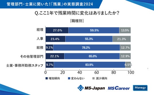 株式会社MS-Japan(本社:東京都千代田区 代表取締役会長兼社長CEO:有本隆浩/以下MS-Japan 証券コード:6539)が運営する、管理部門・士業の総合転職サービス「MS Career(エムエスキャリア)」は、『管理部門・士業の残業実態調査2024』を発表しましたので、お知らせいたします。
