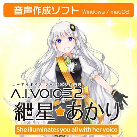 『A.I.VOICE2 紲星あかり』は、明るく可愛らしい女の子の声をベースに、簡単に表現力豊かな音声が作成できるソフトです。