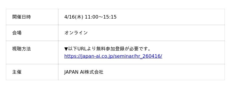 [表1: https://prtimes.jp/data/corp/53307/table/275_1_d57a757abd23952aa8f38e9a154c243b.jpg?v=202604020445 ]