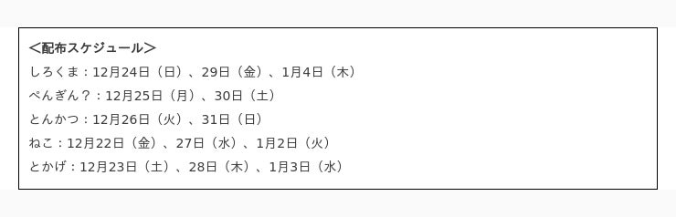 <日時>12月29日(金)11時30分~、13時30分~、15時30分~