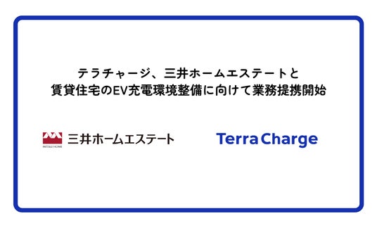 EV充電インフラ事業「Terra Charge(テラチャージ)」を展開するTerra Charge 株式会社(本社:東京都港区、代表取締役社長:徳重徹、以下「当社」)は、三井ホームエステート株式会社(本社:東京都江東区、代表取締役社長:高橋弘、以下「三井ホームエステート」)と、賃貸マンションへのEV充電インフラの拡充に向けて業務提携契約を締結いたしました。
