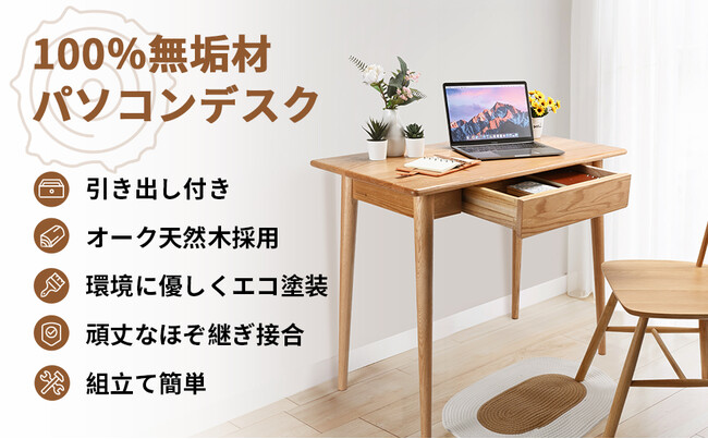100%ケヤキやウォールナット天然木 パソコンデスク80cm