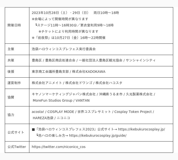 「池袋ハロウィンコスプレフェス2023」開催概要