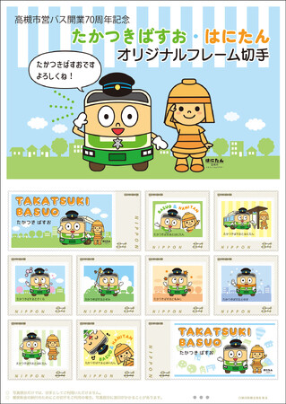 令和6年2月25日に開業70周年を迎えることを記念して、2月25日(日曜日)には現在市内を運行しているいすゞエルガの市営バス記念トミカ、2月26日(月曜日)には市営バスのマスコットキャラクター「たかつきばすお」と高槻市のマスコットキャラクター「はにたん」がデザインされたオリジナルのフレーム切手の販売が開始されます。市営バスのトミカを販売するのは5年前に続いて今回で2回目。前回大好評でしたので、希望の方はお早めにお買い求めください。