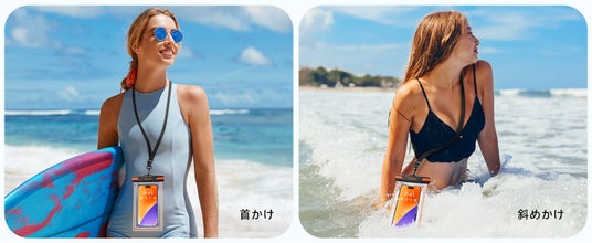 スマホだけでなく、カードや小銭、鍵なども一緒に収納可能。海やプールだけでなく、雨の日の通勤、屋外イベント、工事現場など、様々な場面で役立つ一品です。
