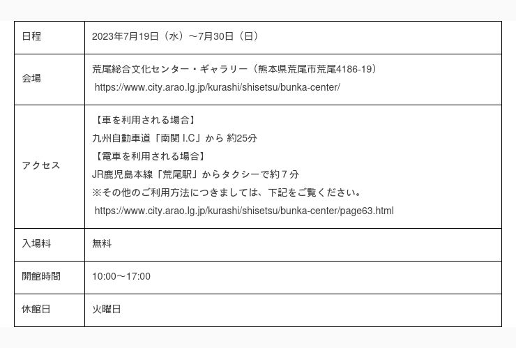 今回、第17回の優秀作品40点を、2023年7月19日(水)~7月30日(日)まで、「荒尾総合文化センター」にて展示しています。