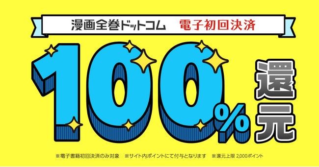 【年末は電子でお得に漫画を読もう!!】初めての電子書籍購入で、決済金額のなんと100%分を漫画全巻ドットコムポイントにて還元いたします!