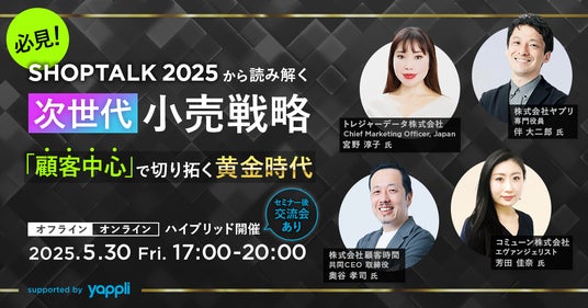 アプリプラットフォーム「Yappli(ヤプリ)」を提供する株式会社ヤプリ(本社:東京都港区、代表取締役:庵原保文、以下「ヤプリ」)は、2025年3月にアメリカ・ラスベガスで開催された小売・ブランド向け世界最大級のカンファレンス「SHOPTALK 2025」について、現地で発信された最新情報を中心に、参加報告会を下記の通り開催いたします。