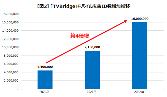 2. テレビ機器に紐づくモバイル広告ID数が440万IDから1,600万IDと約4倍に増加