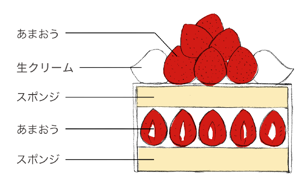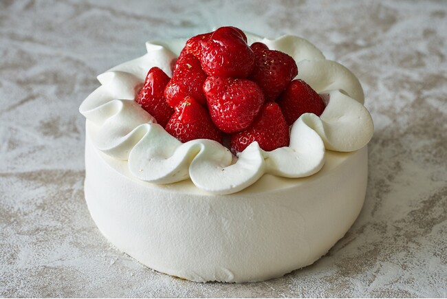 ショートケーキ。柔らかなスポンジとバニラ風味のクリームが生む贅沢な味わいをお楽しみいただけます。