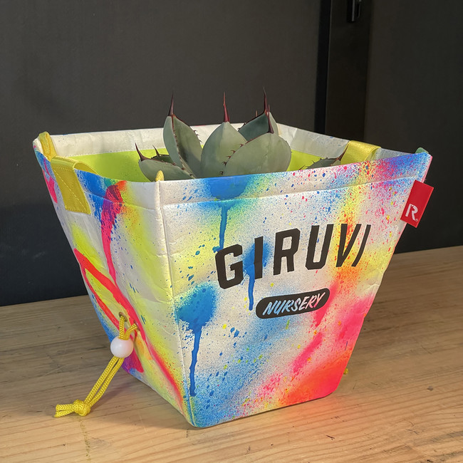 多肉植物の愛好家であるGIRUVI。自身で育てている植物と、その植物をモチーフにしたアート作品を制作。その植物を持ち運ぶためのトートバッグPOT CARRY TOTE「PLANTA」をリリース。植物を育てるように、GIRUVI自身が丁寧にシルクスクリーンで刷り上げた1点物の作品です。
