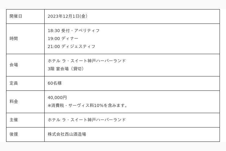 さらに今回はワインのみならず、「小鼓」の蔵元として知られる西山酒造場の幻の日本酒「心楽」を特別にご用意。ワインや日本酒とともに兵庫の冬を味わうグルメエクスペリエンスにご期待ください。