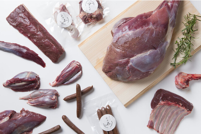 兵庫県朝来市で天然シカの捕獲、解体、販売をおこなう「但馬のジビエ ココ鹿」。捕獲後に素早く血抜きをし、1時間以内の前処理や、冷蔵庫で数日間寝かせて赤身を熟成させるなど、厳格な手順を踏んで、解体処理をしています。そのため肉質は抜群で、同ホテル総料理長の大山も高く評価をしています。