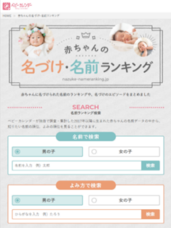 ■赤ちゃんの名づけ・名前ランキング:赤ちゃんの名前、よみのランキング検索メディア