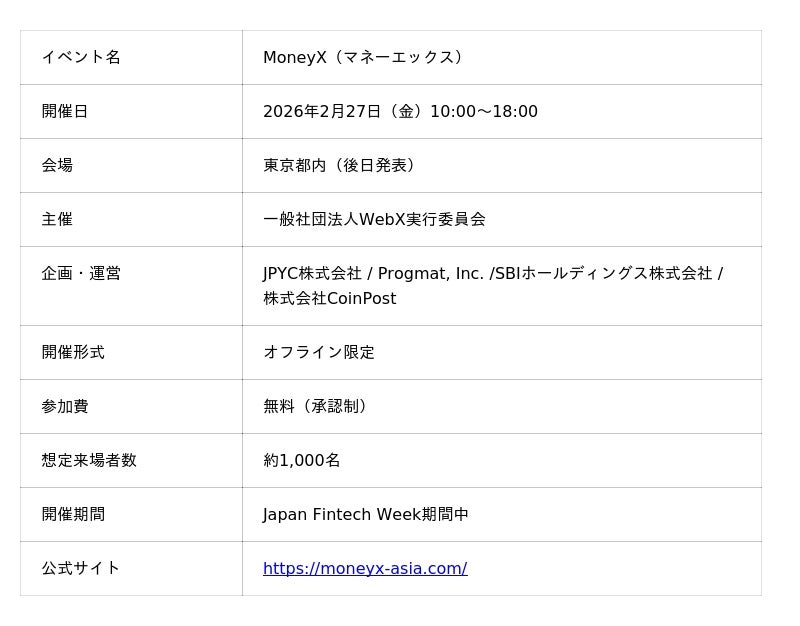 詳細:ステーブルコインの正式認可を背景に、通貨の新時代をテーマとした金融カンファレンス「MoneyX(マネーエックス)」開催決定
