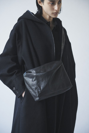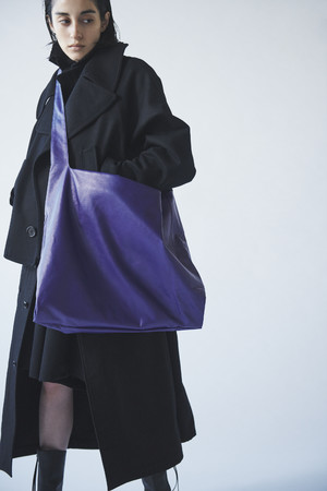 底のパターン(型)を少し捻ることでハンドルを合わせて持った時に自然なドレープが生まれる造形が、花のつぼみを連想させるバック「TULIPS」。2種のハンドルの持ち替えと、取り外せるショルダーストラップで3WAY仕様が可能。