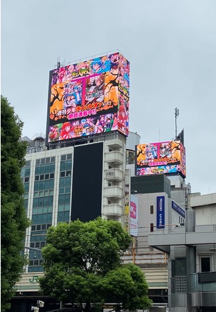 ここでしか見られない「〇〇の主役は我々だ!」のロボロさんナレーションによるオリジナル単行本告知映像と主要キャラ集合の様々なバナー画像で渋谷駅前を魔界色に染め上げる!