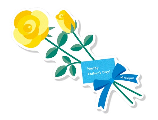 父の日ギフトカードのモチーフは黄色い薔薇です。この花には花言葉もあり「思いやり」「感謝」の意味が込められています。直接伝えるには恥ずかしい「いつもありがとう」「ずっと元気でいてね」の想いも、マイシグナルに託してみませんか?