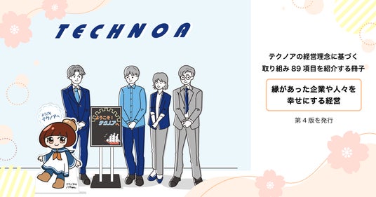 株式会社テクノア(本社:岐阜県岐阜市、代表取締役:山崎 耕治)は、企業理念「縁があった企業や人々を幸せにする」を、業務・組織づくりの具体的な取り組みとして言語化した紹介冊子『縁があった企業や人々を幸せにする経営』の第4版を、2026年3月23日(月)に発行しました。2023年の初版発行以来、テクノアは改訂を重ねています。