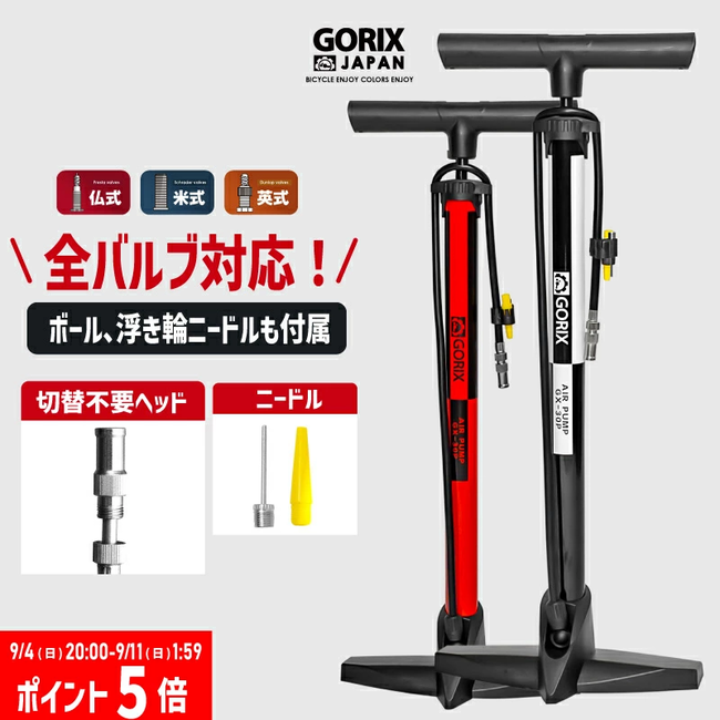 GORIX株式会社(所在地:大阪市東淀川区、代表取締役:長野明)の自転車パーツブランド「GORIX」は、楽天市場店にて2022/9/4(日)20:00~9/11(日)1:59に楽天スーパーSALEを開催。バーテープ、サイクルスタンド、空気入れ、ポーチ、バッグなどが最大83%OFFとなる楽天ビッグセールです。