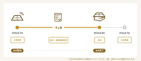 設計完了および建築確認取得後、データセンター用地として売却し、配当・元本償還を行います。