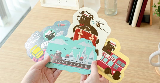 イラストレーター兼グラフィックデザイナーとして活躍中のob1toy(オビワン)と箔押しブランドROKKAKUのコラボ。「TOURSシリーズ」より、海から陸、そして宇宙まで旅を続けるクマを描いた「ダイカットポストカード」と「ステッカー」が新登場!