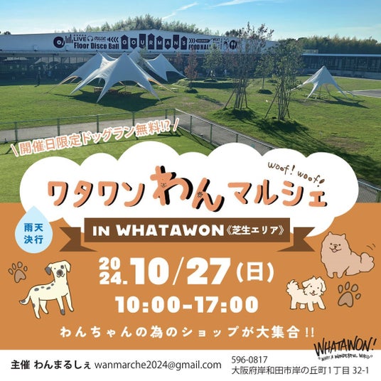 ワタワンわんマルシェ開催予定!ワワンバナキッチンオープン日の10月27日(日)は、ワタワン芝生エリアにて人気イベント「ワタワンわんマルシェ」の開催が予定されています。わんちゃんのためのショップが大集合するこのイベントは、毎回多くの来場者が訪れ、愛犬との特別な時間を楽しむことができます。今回のマルシェでも、多彩な商品がラインナップ。オーナー同士の交流や、わんちゃんとの生活をもっと豊かにするアイディアを得られる場となっています。ワタワンならではの楽しいひとときを、愛犬と一緒にお過ごしください!