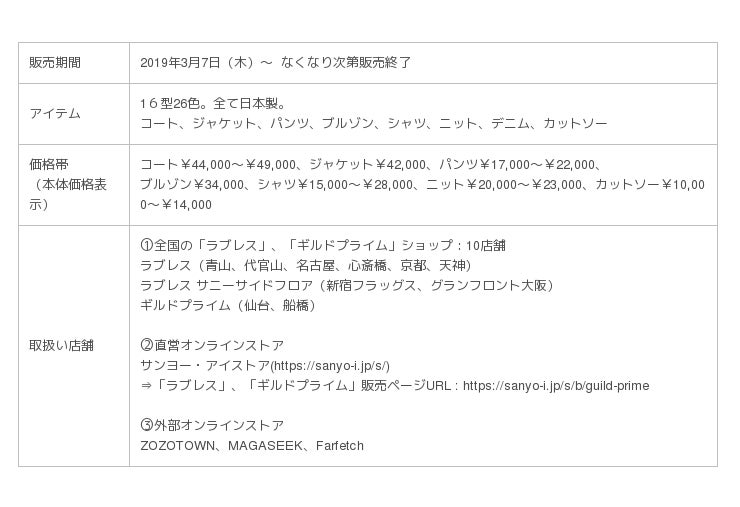 三陽商会が展開するセレクトショップ「LOVELESS(ラブレス)」は、ブランド「FACTOTUM(ファクトタム)」を手掛ける国内屈指のデザイナー有働幸司氏と協業したメンズ向けの新たなカプセルコレクション「LF15.(エルエフ)」を全国の「ラブレス」「ギルドプライム」ショップとオンラインストアの「サンヨー・アイストア」等にて3月7日(木)より発売いたします。「LF15.」では、シンプルエレガント、コンフォート、ファンクションをキーワードに、いままでの「LOVELESS」には少なかったトラッドをベースにしたタイムレススタイルをご提案いたします。また、有働氏がお客さまにコーディネートや似合うアイテムを紹介するコンサルティング販売を、3月9日(土) 「LOVELESS青山」、3月16日(土) 「LOVELESS心斎橋」、3月17日(日) 「LOVELESS名古屋」の3店舗にて実施いたします。