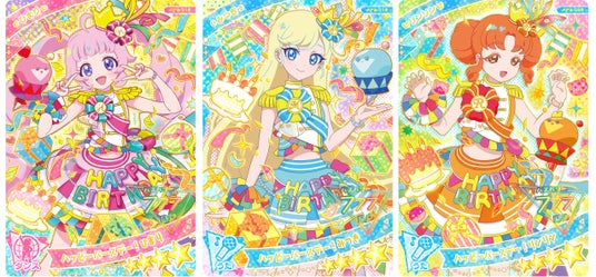 『ひみつのアイプリ』「3だん」では、新たに「ハッピーバースデーカード」がラインアップされます。「3だん」の稼動期間中に誕生日を迎えるキャラクターが特別なコーデを着ている描き下ろしカードで、読み込むとオリジナルのバーズデーソング「ハピハピハッピー☆マイバースデー」をそのキャラクターが歌ってダンスする特別なライブをプレイすることができます。