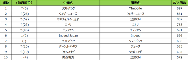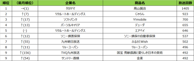 2022年9月度 エリア別テレビCM放送回数ランキング