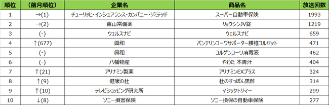 2022年9月度 商品別テレビCM放送回数(全国地上波25局、BS放送6局合計)