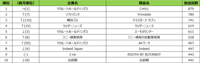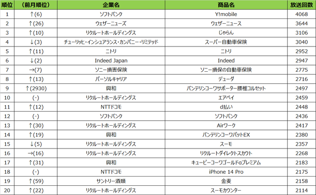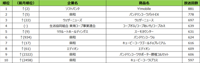 2022年9月度の商品別ランキングは、1位ソフトバンク「Y!mobile」、2位ウェザーニューズ「ウェザーニュース」、3位リクルートホールディングス「じゃらん」となりました。