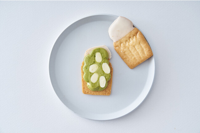 甘さ控えめの抹茶クリームとホワイトチョコレートの甘みを分け離すことで、抹茶のマイルドな渋味と香りがよりいっそう引き立った一体感のある味わい。爽やかな抹茶のほろ苦さに、ミルクリッチなホワイトチョコレートが調和した、あっさりとした甘みと歯ざわりの良い粒感をお楽しみください。