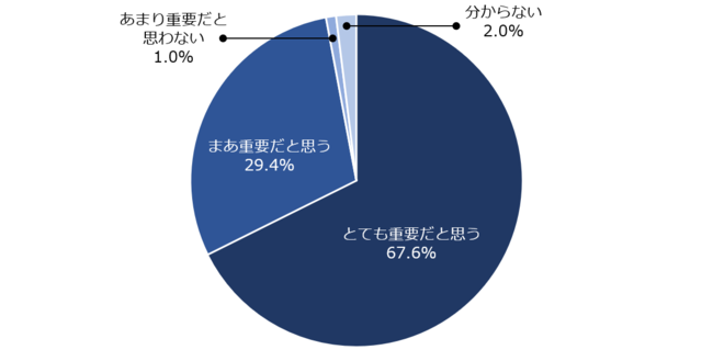 「とても重要だと思う」が67.6%、「まあ重要だと思う」が29.4%で、全体の97%以上がSDGs推進への取り組みを重要事項と捉えているという結果でした。日本国内の食品事業者においては、2015年のSDGs採択やESG経営の広がりの中で、SDGs推進の重要性が認識されていると読み取れます。