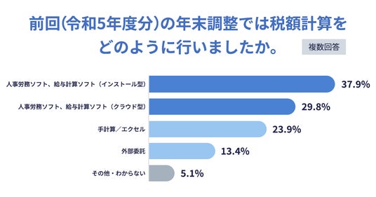令和5年分の年末調整における税額計算では、全体の67.7%がソフトを利用しており、またそのうち29.8%がクラウド型のソフトを利用していることがわかりました。