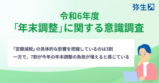 弥生株式会社(本社:東京都千代田区、代表取締役 社長執行役員:前山 貴弘、以下「弥生」)は、全国の従業員100名以下の企業における給与計算担当者を対象に、令和6年度「年末調整」に関する意識調査をしましたので、お知らせします。