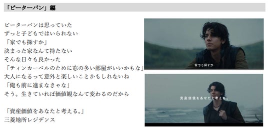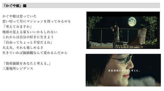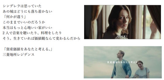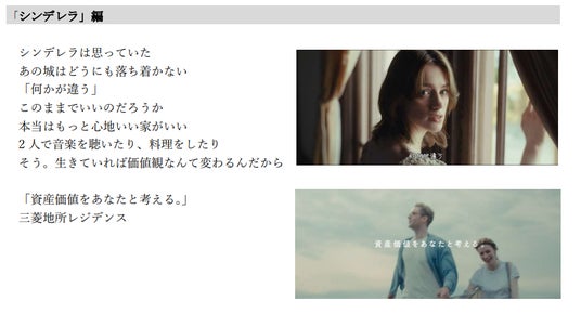 新CMは、「シンデレラ」篇、「かぐや姫」篇、「ピーターパン」篇の全3パターンを制作しました。それぞれのキャラクターの、誰もがよく知る物語のその後を描いています。時が経ち、少しずつ変わっていく3人の価値観。自分の気持ちに素直に向き合って、住まいの新しい価値に気づきはじめる、というストーリーです。固定概念にとらわれず、今を生きるすべての人の変わりゆく価値観に寄り添い資産価値を考えつづける、そんな三菱地所レジデンスの意思を込めました。