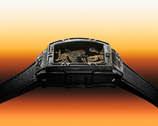 ダイアルには、手作業で配置したカーボンマルケトリーと、3Nゴールドプレートを施した真鍮製のアップリケで創造した馬のモチーフをセッティングしています。現代の時計製造において、最も扱いが難しい素材のひとつであるカーボンを、手作業でカット・整列・組み立てることで、ウブロがその困難な素材の加工技術を極めていることを示しています。42mmのトノー型ケースはマットブラックカーボン製です。ブラックラッカーのベースがコントラストと深みを増幅させ、スモーク加工を施したサファイアクリスタルのケースバックとブラックカーフレザーストラップが、時計の特徴的なアイデンティティをより強く印象づけます。